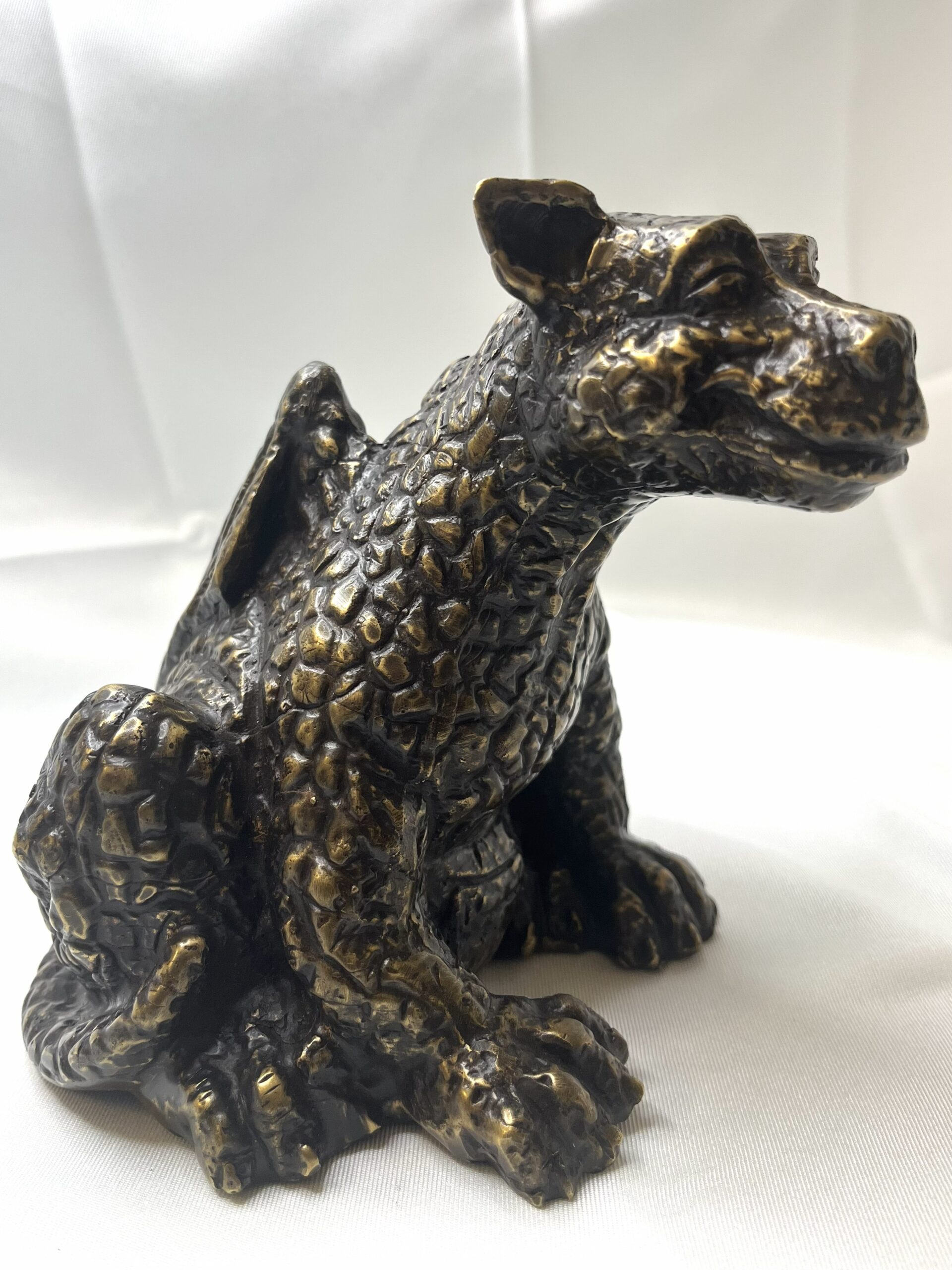 Bronze Skulptur Drache grinsend, 14x12x15 cm