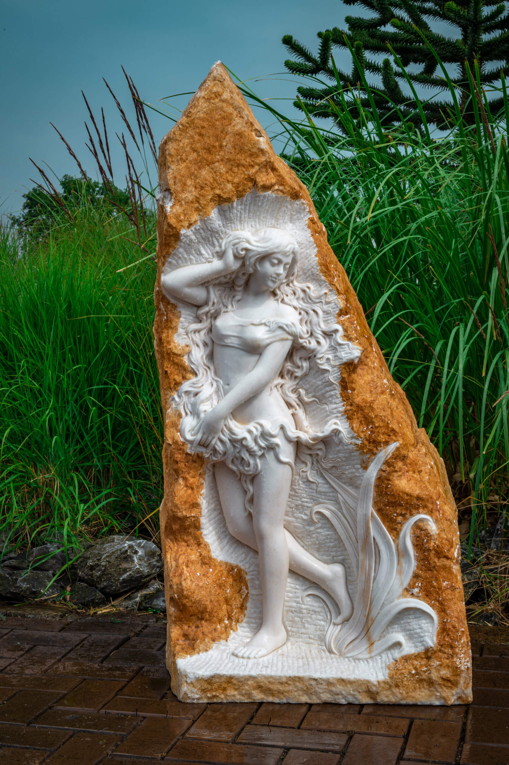 TECHNISCHE DETAILS: Stil: Frau im Stein | Material: Marmor | Maße (Höhe): 127 cm | Herstellung: handgefertigt | Eigenschaften: Langlebig & witterungsbeständig.