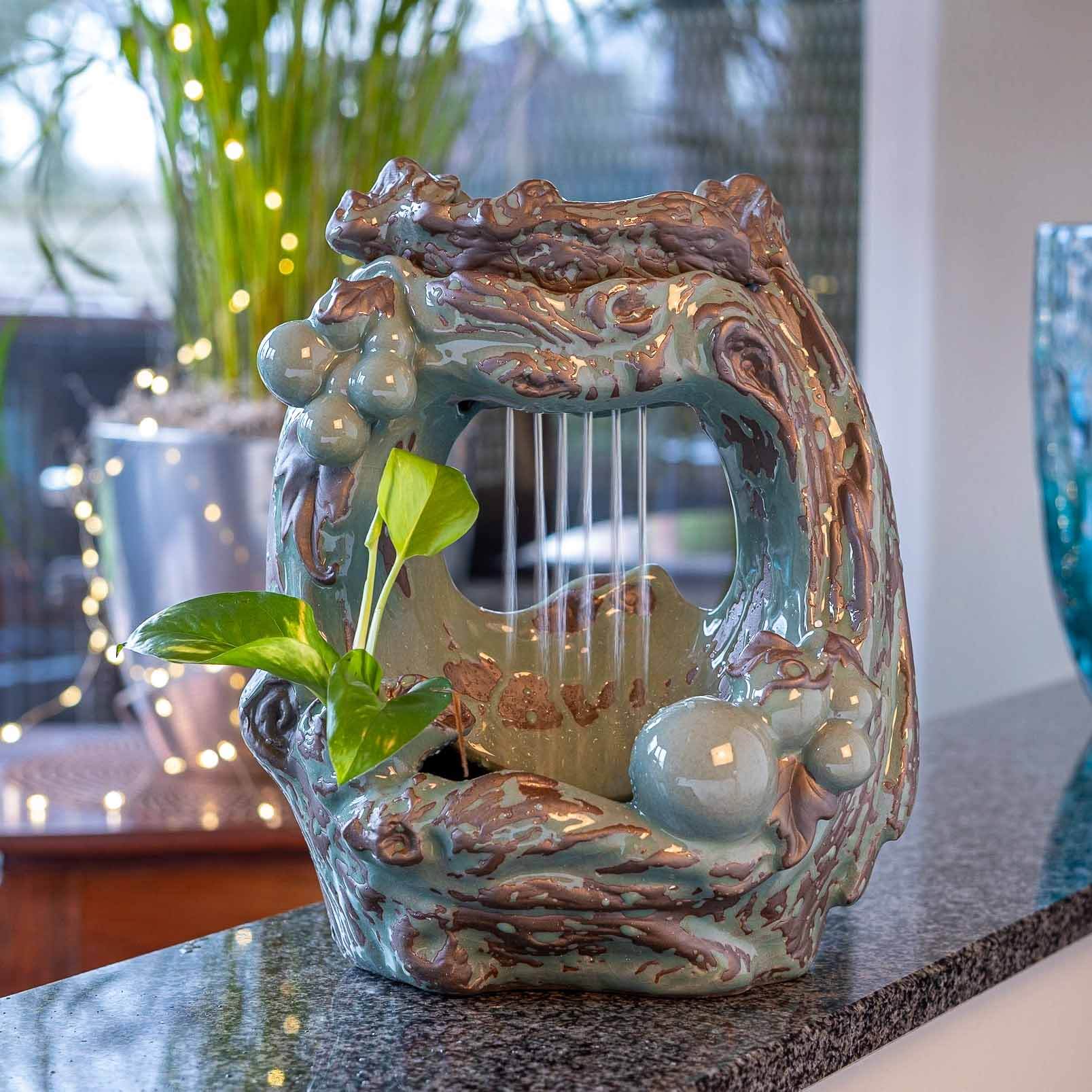 Zimmerbrunnen aus Keramik | Asiatisches Wasserspiel für besseres Raumklima |komplett mit Pumpe | Maße: 23 x 17 x 28 cm Entspannung zu Hause